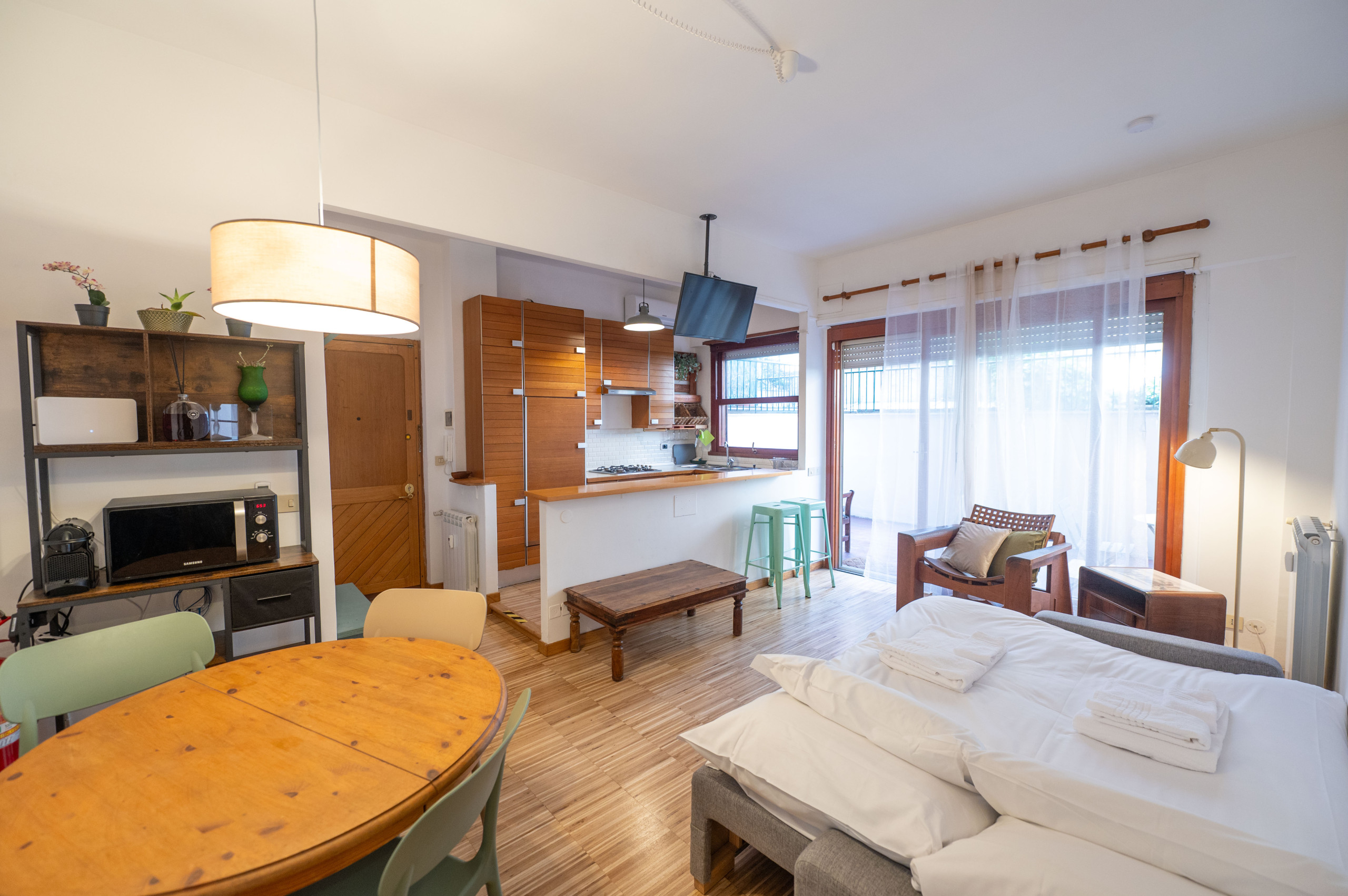 Steps away from Campo de Fiori, this one-bedroom apartment will make you feel at home Roman style. Luminous, woody and well connected, is the perfect place for a romantic getaway, a family or a group of friends.