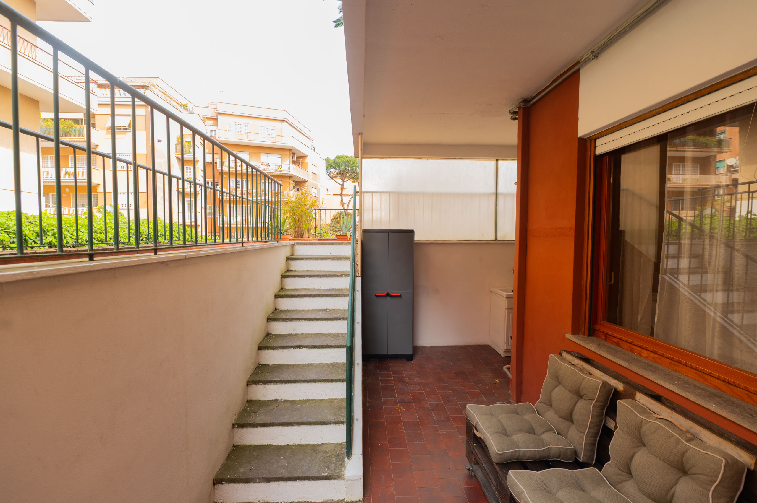 Ideal for couples, small families or friends, this apartment offers the perfect balance between indoor comfort and generous outdoor space — a rare feature in Rome.